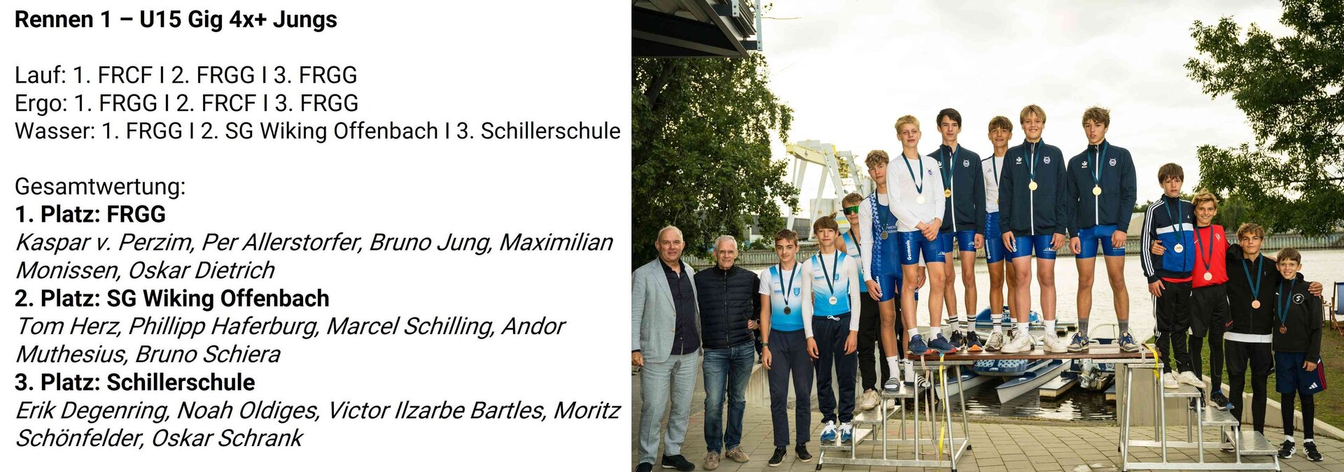 Die anschließenden Rennen wurden in der Bootsklasse Gig 4x+ in den Gruppen U15 Jungs, U15 Mixed und U19 Jungs ausgetragen.